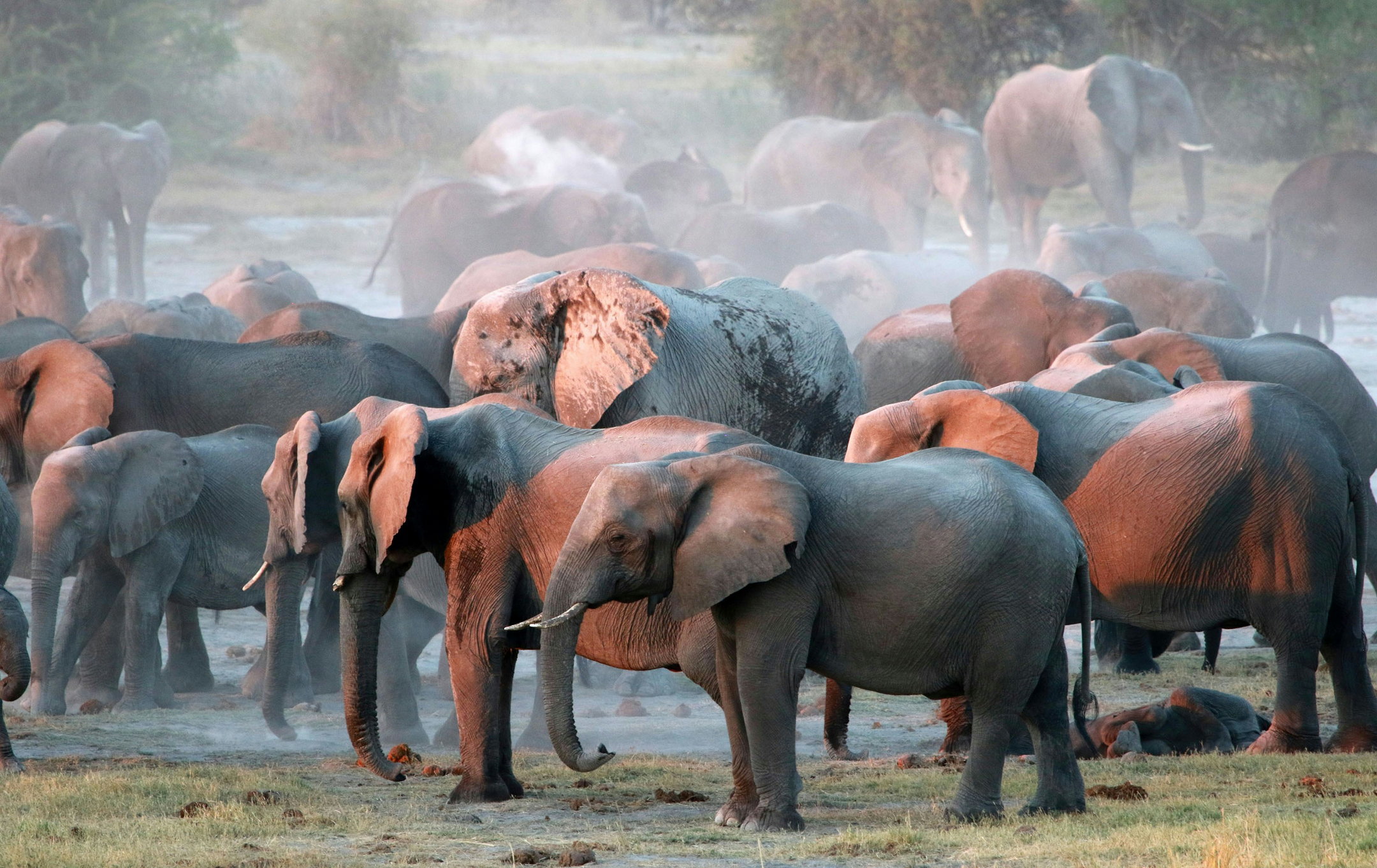 Около 600 слонов живут в парке и окрестностях. Стада до 50 голов — обычное дело. Одинокие самцы, матери с детёнышами, купа...