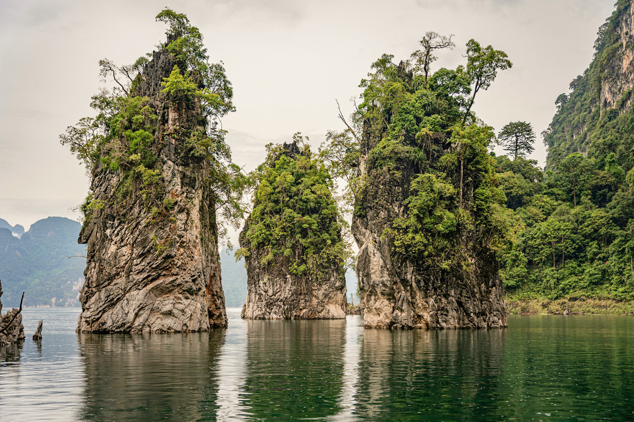 Озеро Чео Лан — жемчужина парка: известняковые утёсы, поднимающиеся из воды, напоминают Халонг во Вьетнаме. Здесь можно провести ночь в плавучем домике, каякинг и треккинг по джунглям.